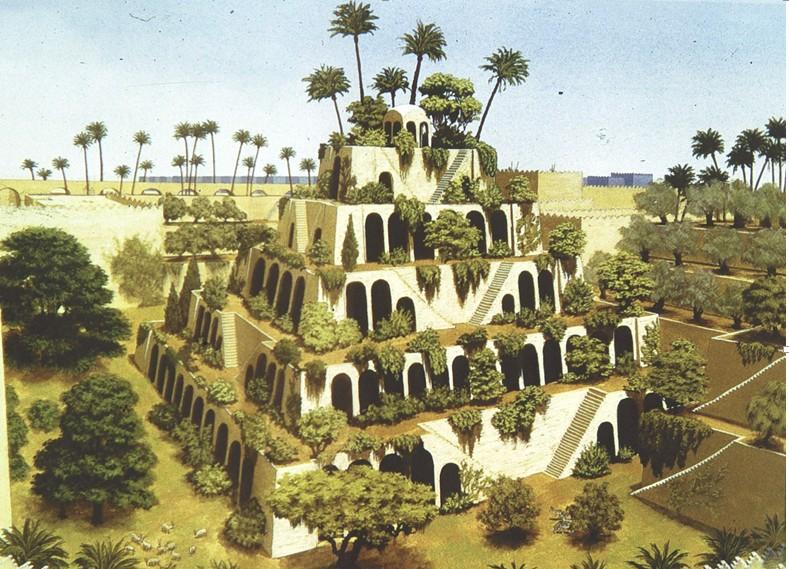空中花园,是古代世界七大奇迹之一,又称悬园。在公元前6世纪由新巴比伦王国的尼布甲尼撒二世在巴比伦城为其患思乡病的王妃安美依迪丝(Amyitis)修建的。现已不存。空中花园据说采用立体造园手法,将花园放在四层平台之上,由沥青及砖块建成,平台由25米高的柱子支撑,并且有灌溉系统,奴隶不停地推动连系著齿轮的把手。园中种植各种花草树木,远看犹如花园悬在半空中。巴比伦文献中,空中花园始终是一个谜,甚至没有一篇提及空中花园。现在科学家证实巴比伦空中花园实际上位于巴比伦以北300英里之外的尼尼微,其建造者是亚述王西拿基立(Sennacherib),而不是巴比伦的尼布甲尼撒王(King Nebuchadnezzar)。