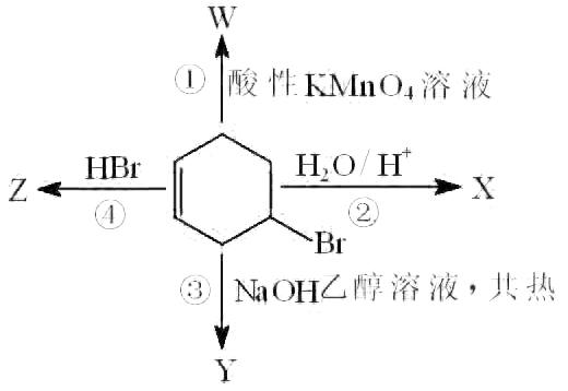 4—溴环己烯与H2O的加成反应、氧化反应后的产物均含有两种官能团,而与HBr的加成反应、在NaOH醇溶液条件下发生的消去反应,产物的官能团为一种,符合题意。