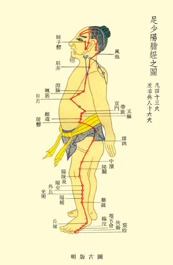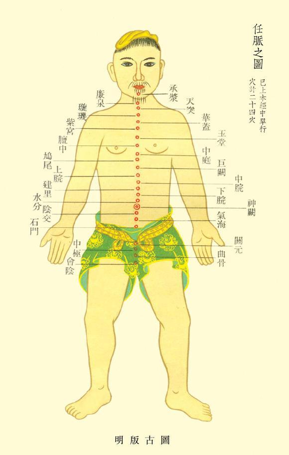 奇经八脉是督脉、任脉、冲脉、带脉、阴维脉、阳维脉、阴跷脉、阳跷脉的总称。“奇”有奇异、特殊的意思,与十二正经不同。既不直属脏腑,又无表里关系。其作用一是在循行中将功能相似的经脉联系起来,达到统摄有关经脉气血、协调阴阳的作用;二是对于十二经脉的气血有蓄溢调节作用。奇经八脉循行无规律,督、冲、任脉同起于胞中,督脉行于腰背正中,上至头面;任脉行胸腹正中,上抵颏部;冲脉与足少阴经并行,环绕口唇。带脉起于胁下,环行腰间一周。阴维脉起于小腿内侧,沿腿股内侧上行,至咽喉与任脉会合。