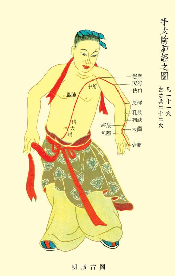十二经脉的名称与分布:十二经脉的名称是根据脏腑、手足、阴阳而定的,十二经脉隶属于十二脏腑,结合其在手足循行时内外、前中后位置的不同,根据阴阳学说予以命名(名称如下)。