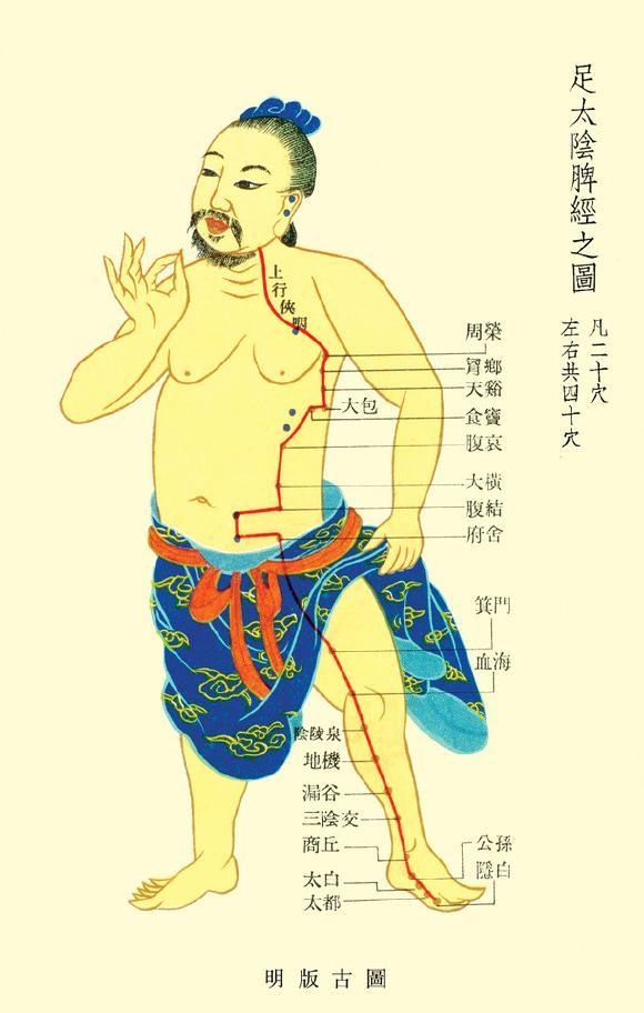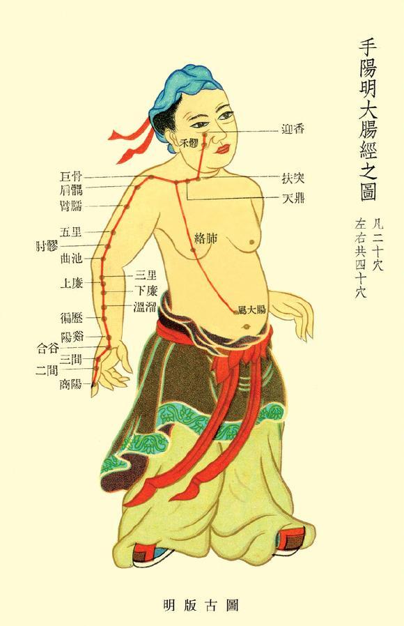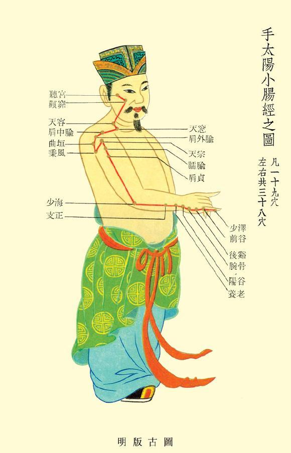 阴经隶属于五脏,行于四肢的内侧,太阴在前,少阴在后,厥阴在中;阳经隶属于六腑,行于四肢的外侧,阳明在前,太阳在后,少阳在中。躯干部:足三阳经分布于躯干的外侧足三阴经分布于胸腹部。手六经中,手三阳经过肩部上颈部,除手厥阴在侧胸部有较短的分布外,手太阴、手少阴由胸内直接出于腋下。头面部:阳经都上行头面部而联系五官,但分布复杂,规律不明显;阴经多行于头颈的深部而联系喉咙、舌、目等器官。