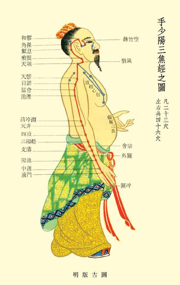 十二经脉构成“阴阳相贯,如环无端”的气血循环系统,手三阴经从胸走手,交手三阳经;手三阳经从手走头,交足三阳经;足三阳经从头走足,交足三阴经;足三阴经从足走腹,交手三阴经。流注规律:手太阴肺经—>手阳明大肠经—>足阳明胃经—>足太阴脾经—>手少阴心经—>手太阳小肠经—>足太阳膀胱经—>足少阴肾经—>手厥阴心包经—>手少阳三焦经—>足少阳胆经—>足厥阴肝经。