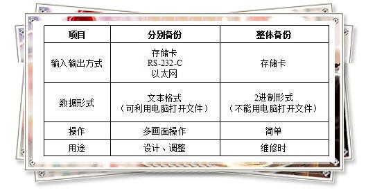 SRAM的数据,通过存储卡一次性全部备份, 操作简单。