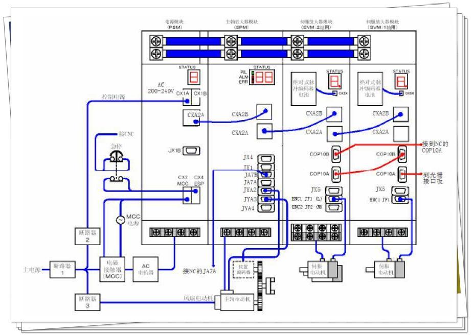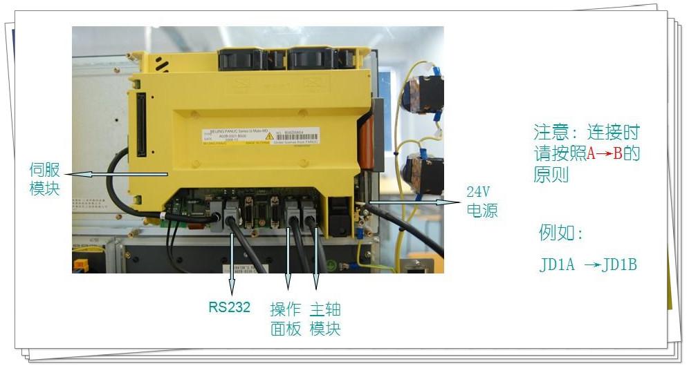 (1)在机床不通电的情况下,按照电气设计图纸将LCD/MDI 单元,CNC 主机箱,