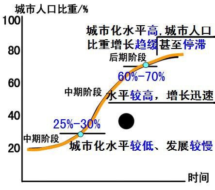 城市化水平的高低:主要由城市人口占总人口比重的百分数反映,百分比越大,表明城市化水平越高。