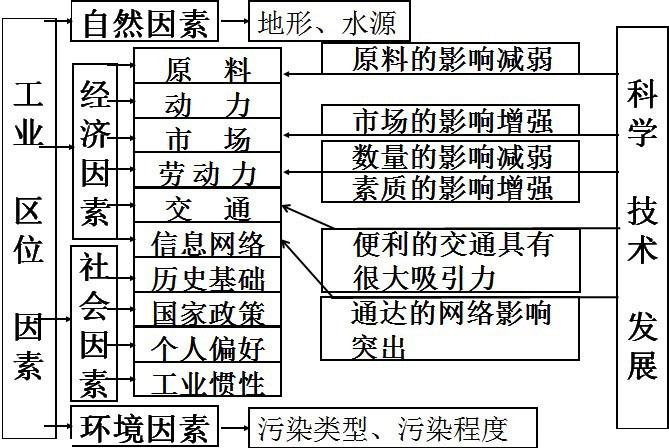 2、不同工业部门的生产特点不同,区位选择考虑的主导因素(工业指向型)不同。主导区位因素影响工业区位选择的趋向。
