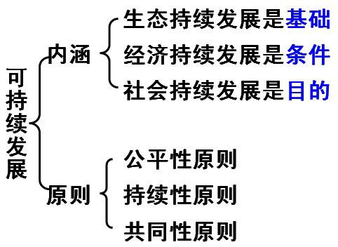 模拟:指出可持续发展的内涵,并对应说明其在图中的具体表现。
