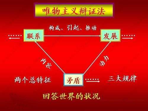 唯物辩证法,是一种研究自然、社会、历史和思维的哲学方法;是辩证法的三种基本历史形式之一;是由马克思首先提出,经其他马克思主义者(比较突出的如恩格斯、列宁、托洛茨基、毛泽东等)发展而形成的一套世界观、认识论和方法论的思想体系;是马克思主义哲学的核心组成部分。唯物辩证法认为:“普遍联系”和“永恒发展”是世界存在的两个总的基本特征,从总体上揭示了世界的辩证性质;唯物辩证法的基本规律和各个范畴,从不同侧面揭示了这两个基本特征的内涵和外延;矛盾(即对立统一)的观点是唯物辩证法的核心。