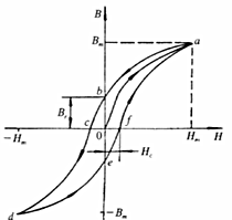 之间反复进行周期性磁化,就可以得到如图1-3-3所示的对称原点的闭合曲线 abcdefa 。可以看出,当 H 从零增加到