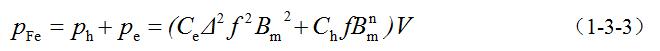 式(1-3-4)表明,铁心损耗近似与频率的1.3次方成正比,与铁心中最大磁感应强度的二次方和铁心质量成正比。