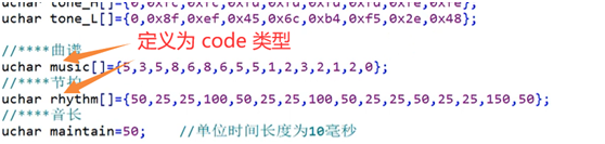 形如:uchar code music[]={5,3,5,8,6,8,6,…………};
