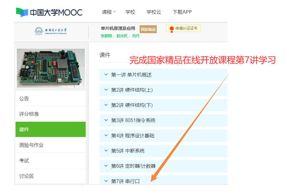 请大家在课前前往中国大学MOOC选择哈尔滨工业大学的《单片机原理及应用》课程,完成第7讲的学习。