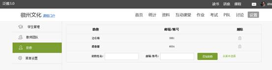 泛雅平台建立课程允许教师在课程中加入助教。点击左侧标题栏“助教”选项,则可手动输入姓名账号,或直接从库中筛选信息,假如课程的助教。