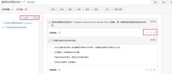 编辑完成后,教师在作业编辑界面检查时,可以进行调整题目顺序,再次编辑题目或删除题目的操作。