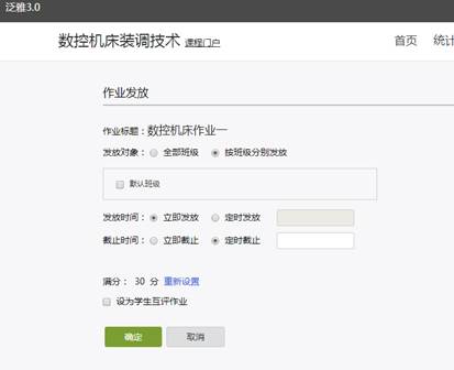 在发放作业时,可以选择发放对象和发放时间,也可以对分值进行重新的调配。如果勾选“学生互评作业”,则作业会以学生互评的方式评分。