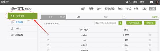进入设置界面后,在左侧的导航栏内选择“学生管理”,即进入了学生管理界面。