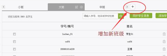 在班级名称的右侧,有一个“+号”按钮,点击可以增加一个新的班级。