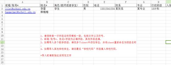 要注意严格按照模版当中的要求导入学生的信息。