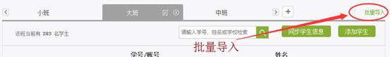 如想添加新的学生进入班级,教师可选择自行导入学生,应点击右上方“批量导入”。