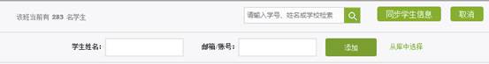 老师亦可自主添加学生,点击“添加学生”按钮,即可通过输入学生姓名和邮箱等信息添加学生进入班级。
