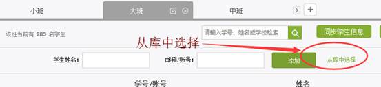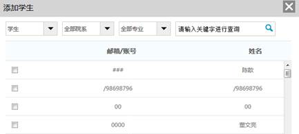 教师在添加学生时也可以从点击从库中选择,在数据库中通过院系,专业等信息进行学生的筛选。
