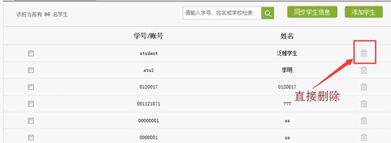 如错误添加学生,可点击学生右侧删除按钮直接删除。