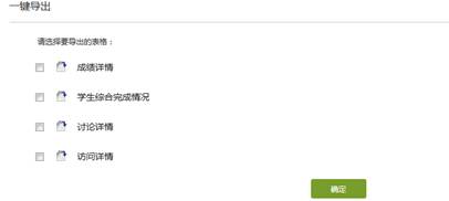 点击一键导出按钮,则可以选择导出已归档班级的成绩详情,学生综合完成情况,讨论详情,访问详情等信息。