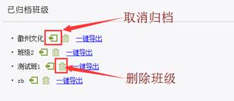 对已归档的班级,可以选择取消归档,班级即被还原到学生管理界面,可以继续进行设置。也可以将不再需要的班级删除。