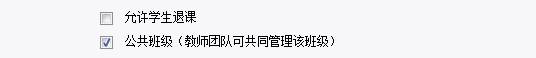 教师也可选择是否允许学生退课。组成了教课团队的老师可以勾选“公共班级”,从而整个团队的教师可以共同管理该班级。