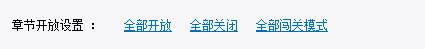 章节开放设置即,教师可以选择令课程对学生全部开放,全部关闭,或闯关式开放(即通过闯关式的模式,保证学生可以一步一步切实地完成课程的学习)。