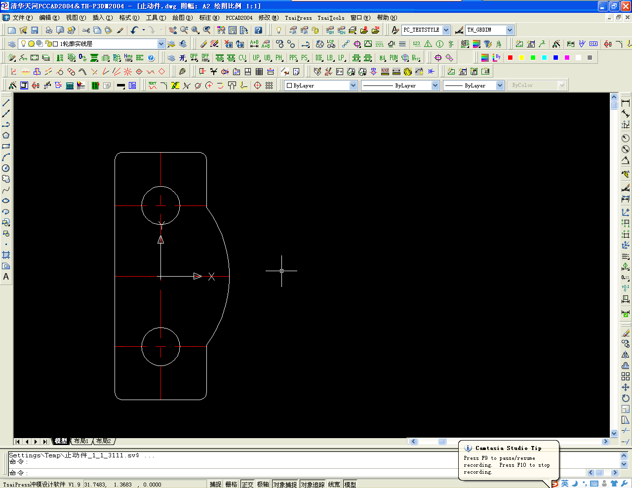 调整质心位置:由于冲裁模具的压力中心需要与模具的对称中心重合,因此需要将质心位置进行调整。在CAD软件中,可以使用移动、旋转等命令,将质心移动到模具的对称中心位置。