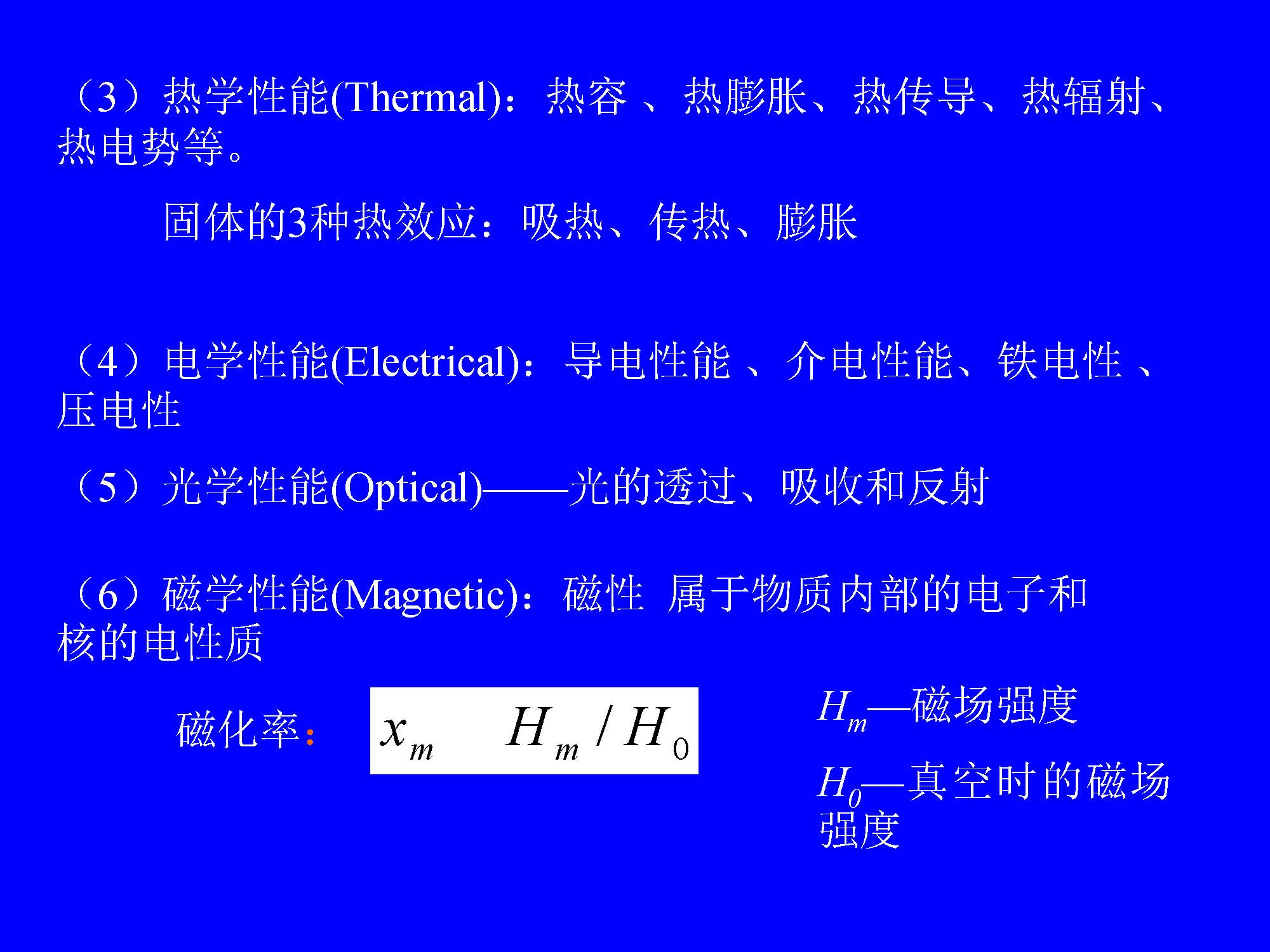 (1)化学性能(Deteriorative):是指材料抵抗各种介质作用的能力,包括溶蚀性,耐腐蚀性、抗渗入性,抗氧化性等,这些归结为材料的化学稳定性。