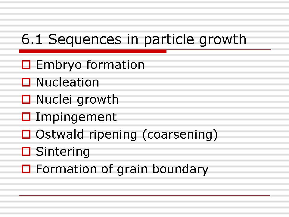 6.1 Sequences in particle growth