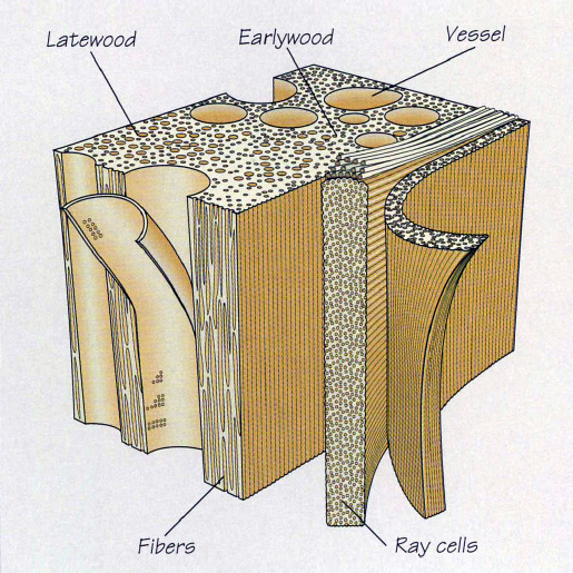 由于造纸主要利用木材的木质部,所以木材的宏观结构介绍木质部的粗视构造。
