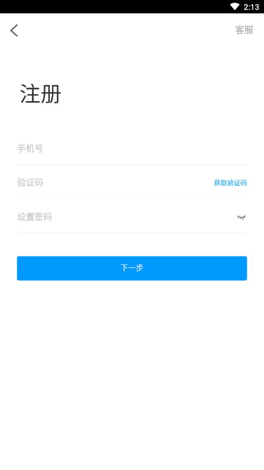 按照提示填写手机号,获取验证码,设置密码,之后点击下一步。