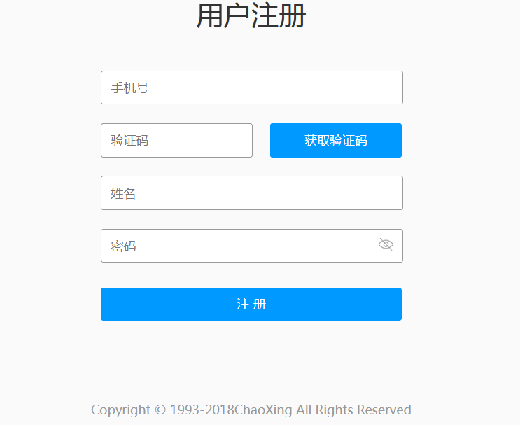 输入手机号,密码,姓名,密码,点击注册即可,注册成功,页面会自动跳转至“我的”空间。