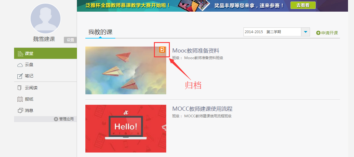 按钮,即可对所选的课程进行归档操作;若点击