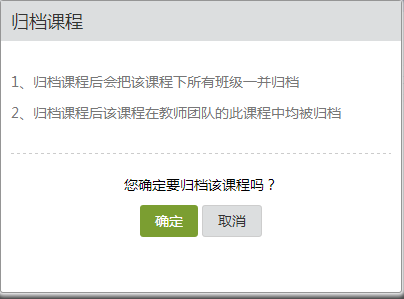 归档:主要是对已结束的课程进行归档操作,若课程尚未结束不建议用户归档课程,否则将对现有数据造成不可逆的清除。