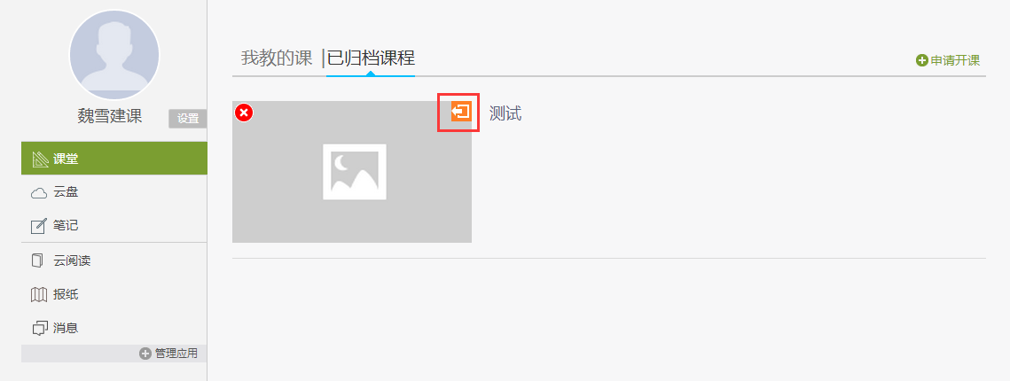 按钮,即可对所选的课程进行取消归档操作;若点击