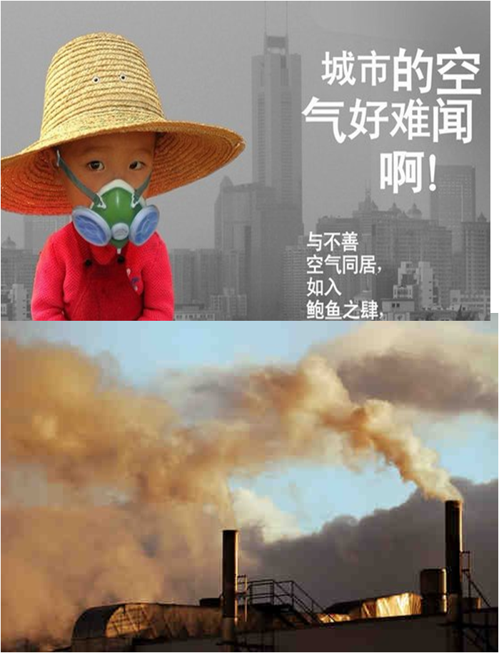 (1)工业:工业生产是大气污染的一个重要来源。工业生产排放到大气中的污染 物种类繁多,有烟尘、