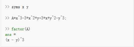 利用MATLAB的符号数学工具箱(SymbolicMath Toolbox)[d]可以进行代数或符号运算,如分解多项式因子和解代数方程: