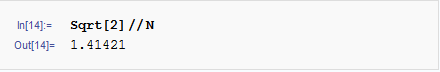 “//N”这种奇怪的写法其实是使用N这个函数时的另一种写法[4],Sqrt[2]//N就相当于N[Sqrt[2]]: