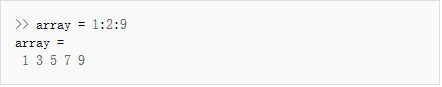 定义了一个名为array的变量(或向已存在的变量array赋予一个新值),其值为包含1,3, 5, 7, 9的一个矢量。即数组由1开始(初值),每次以增量2 (增量)递增,当达到9 (终值)时停止。