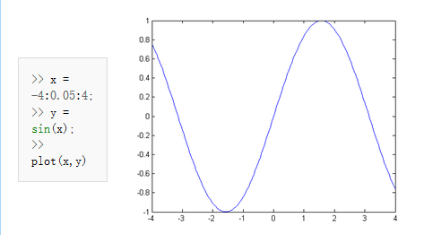 MATLAB中常用的绘图命令是plot,例如描绘一个在[-4,4]区间内的正弦函数: