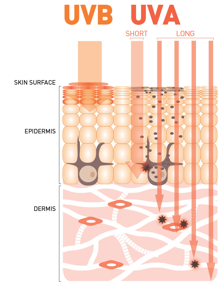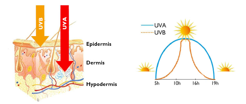 UVA:全年;穿透入真皮;光老化;黑色素紊乱。