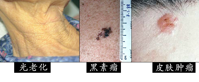 UVB:集中在夏季;作用于表皮;晒伤;表皮增厚。