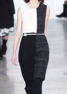 ②H廓形款式特点:以肩部为受力点,不强调胸、腰、臀三围曲线,整个外观是字母“H”型。H廓形结构线一般以直线为主,简洁修长,具有中性化色彩,如直筒裙、直筒外套等。