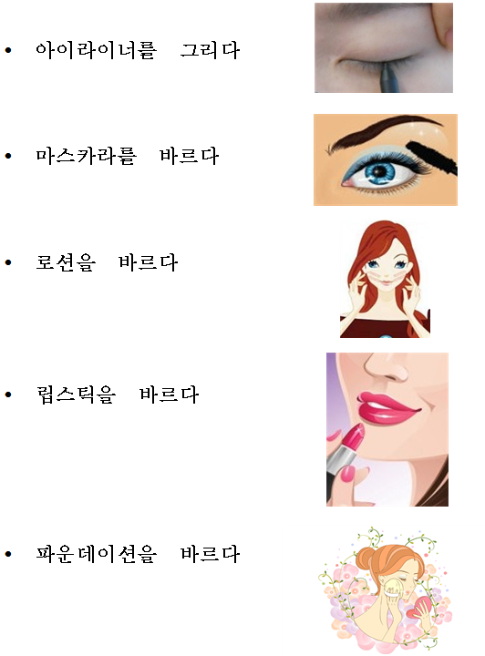 화장【名词】化妆 화장하다 【动词】 化妆 생얼 素颜
