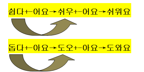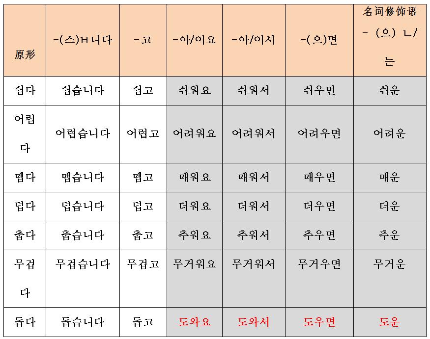 3、“ㅂ”结尾的动词、形容词+아/어요、
