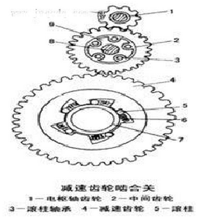 ②采用了减速装置,在转子和起动齿轮之间,安装有减速齿轮,起动电动机传递给起动齿轮的扭距就会增大。利用电磁开关,使得承担电动机(经减速齿轮后)的动力输出是起动齿轮和起动齿轮轴,而啮合器部分不动。输出功率小的起动机,常采用外啮合方式,输出功率大的起动机采用内啮合方式。